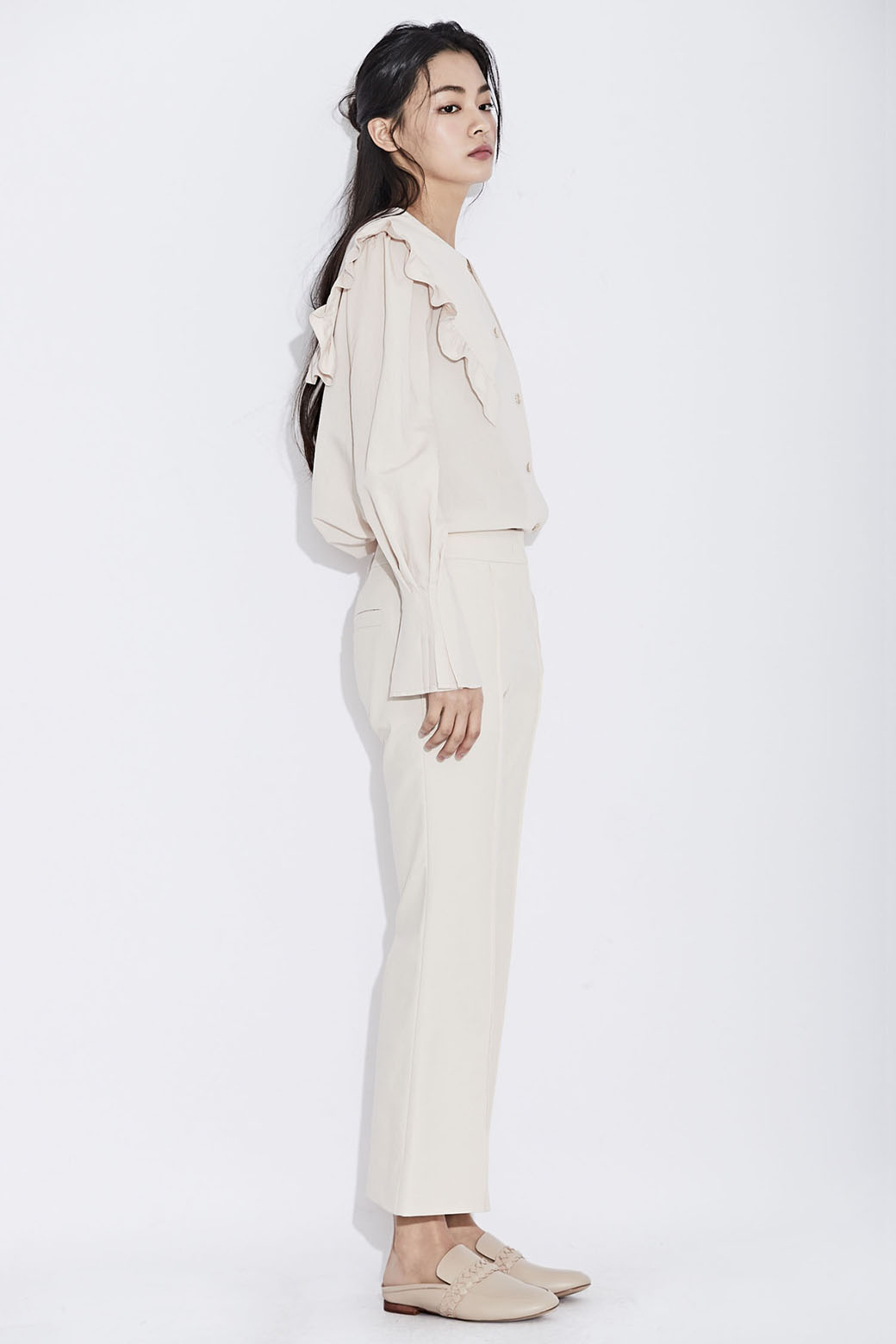 - 발등의 제가죽 위빙으로 포인트를 준 뮬.