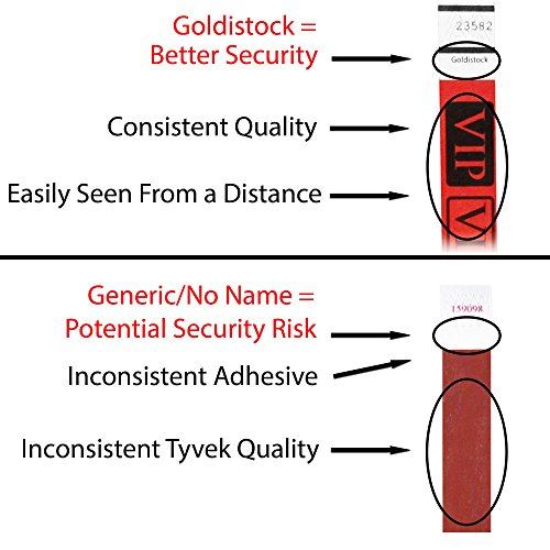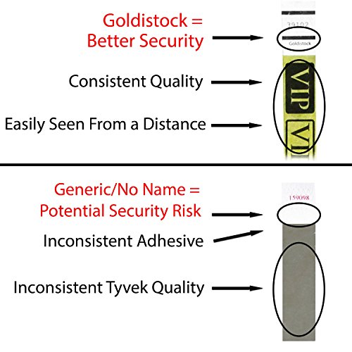 -. Feature : OUR MOST STRIKING WRISTBAND - Event organizers love how our metallic gold wristbands literally shine in most lighting conditions. The metallic gold is an inexpensive way to give any event an upgraded look compared to plain colored wristbands. Our metallic gold wristbands are a step above non-metallic gold wristbands that are more commonly available. / TRUSTED SUPPLIER - Event organizers trust the Goldistock brand. Our wristbands have been used in tens of thousands of events all across the USA and the world. / THE "BETTER SECURITY" WRISTBAND - (SEE IMAGE #2) The "Goldistock" name P.R.Inted on the wristband helps protect you from gatecrashers. / 100% MANUFACTURED IN USA - All material for our wristbands are made in the USA. All manufacturing is in the USA. / CONSISTENT QUALITY - We stand behind our wristbands with a 100% satisfaction guarantee. IDEAL FOR ANY EVENT - Concerts, sporting events, parties, fairs, water & amusement parks, trade shows, conferences, school functions, seminars, and nightclubs. Perfect for any kind of event. For more detailed information SCROLL DOWN TO PRODUCT DESCRIPTION SECTION.