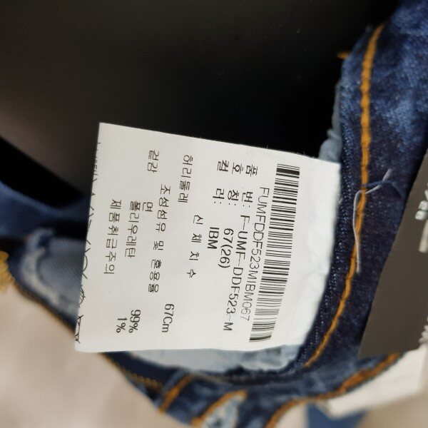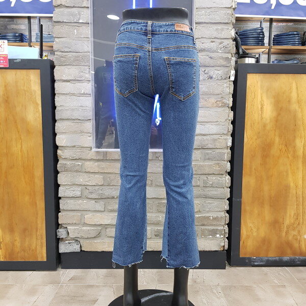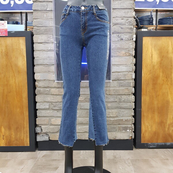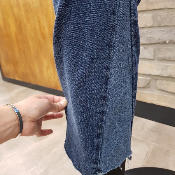 미디엄 인디고 바이오 워싱의 크롭 세미 플레어 핏. 심플하고 차분한 컬러감으로 전체적으로 슬림해보이는 제품. 밑단의 안쪽에 컬러 배색과 'ㄱ'자로 커팅이 되어있는 트렌디한 디자인의 제품. ( 여성사이즈->64(25),67(26),70(27),73(28),76(29)입니다.)