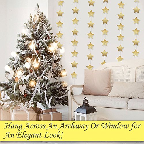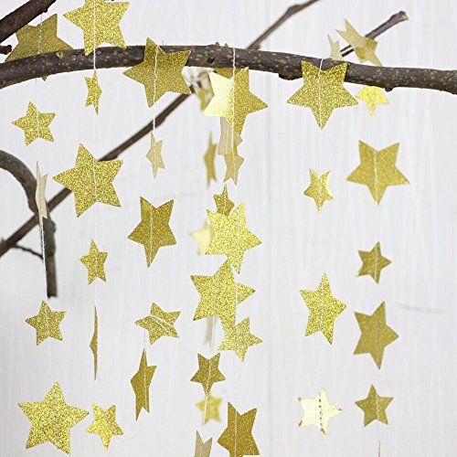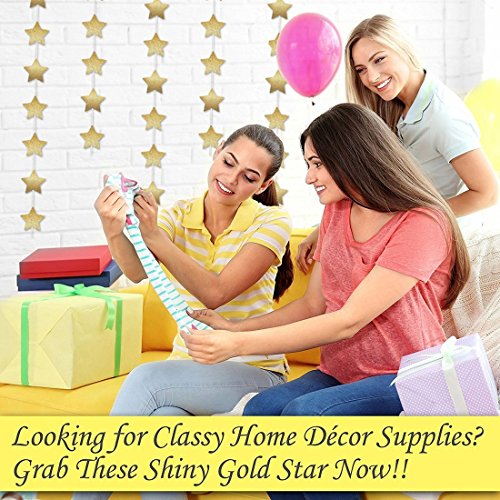 -. Feature : UNIQUE DESIGN: This gold glitter garland is made from premium strong papers, NO GLITTER FALLING OFF, SPARKLE. / IMPROVE SIZE: One Hearts-shaped garland is about 67 piece, It is twice as many as normal garland, 13 Feet /4 m in length, you could cut it if you need. / PACKAGING and USING: This already comes strung together and each package only comes with ONE 13 ft garland, so unroll & unwrap garlands carefully, it can tangle if you do not unroll one side at a time. / RECOMMAND: VERY DRAMATIC IN THE BEST WAY EVER, impress at any event, perfect for weddings, baby shower, bridal shower, birthday party, baby showers christmas and home decorations. / OTHER FUNNY USAGE: It is great backdrop for a sweetie buffet or dessert table, dramatic backdrop for some pictures, and it is gorgeous to made them into a baby mobile too, we promise you don't want to take them off! just fabulous!