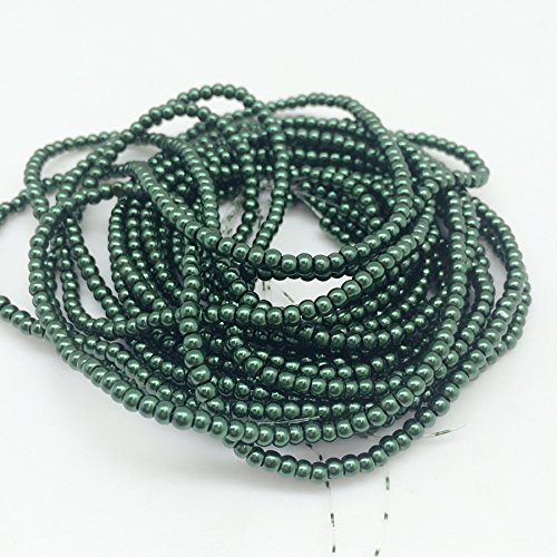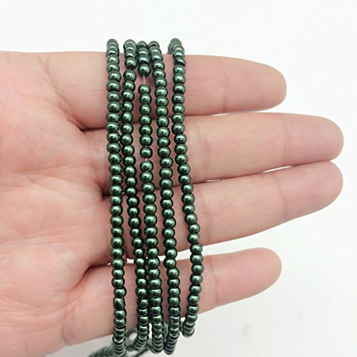 PEPPERLONELY Brand 5 Strands (About 54Grams 1150 PC) Dark Green Glass Pearl Round Beads, 3mm(1/8 Inch)