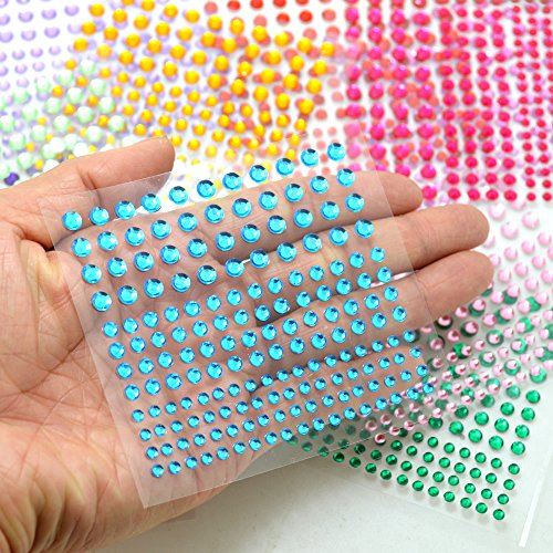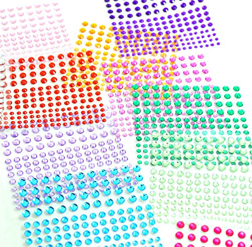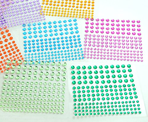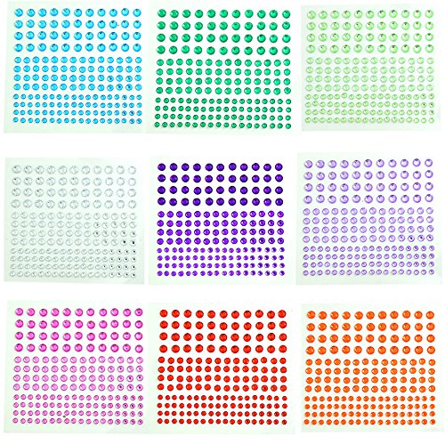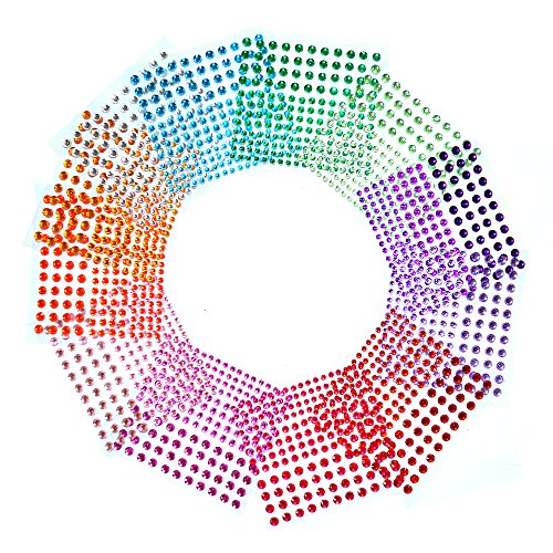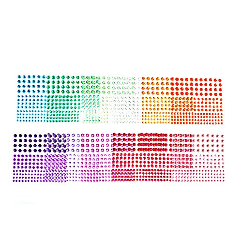 BronaGrand 12 Sheets Multicolor Self-Adhesive Rhinestone Sticker Sheet, 3 Size, 12 Colors,2064 Pieces