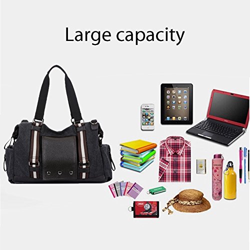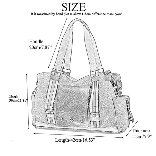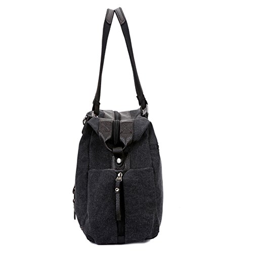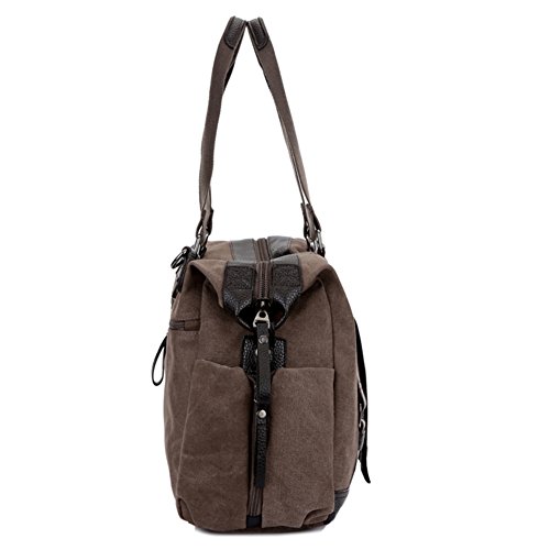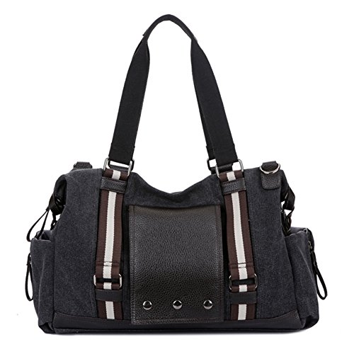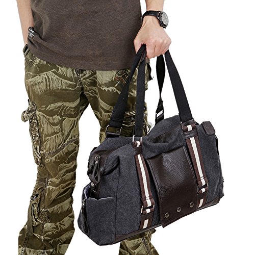 -. Feature : Material:Canvas and leather / Size: 16.53"(L)*11.81"(W)*5.90"(H);Please allow 1-2cm difference as it is measured by hand / The main compartment is big enough to hold clothes,daily supplies.Multi-functional travel duffel bag, can be used as a tote or a shoulder Overnight Handbag. Large capacity, can fit 15" Laptop, Ipad, several clothes and shoes together;Great Choice for overnight bag, short journey bag, weekend travel bag, sports duffel bags / The bag can be used as a hangbag or a single shoulder bag.Adjustable and detachable shoulder belt. / Convenient to carry when you go outdoor to have a travel or business.Fashionable and Casual sports Unisex Lage Bag , is ideal for weekend trip, business trip or any other daily occasions.Package includes 1x canvas travel bag