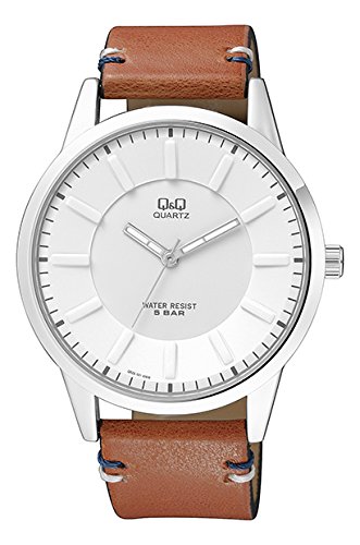-. Feature : Round Silver case watch featuring Silver tone hands and white dial / Light Brown Leather band with a buckle clasp / 45mm case, Stainless steel back / Japanese 2035 CITIZEN movement, Water resistant 50 meters, approx 3 Year battery life / For the distinctive relaxed cool guy...
