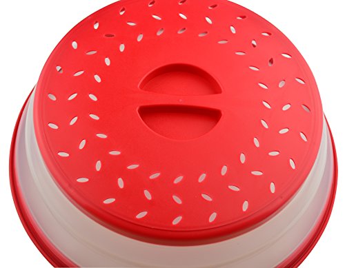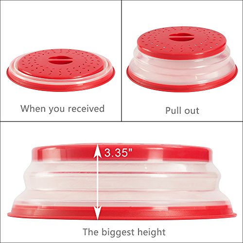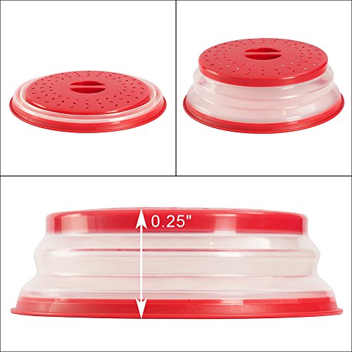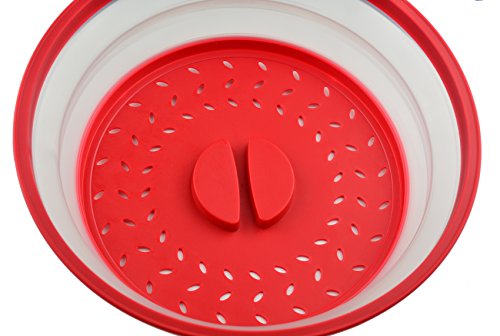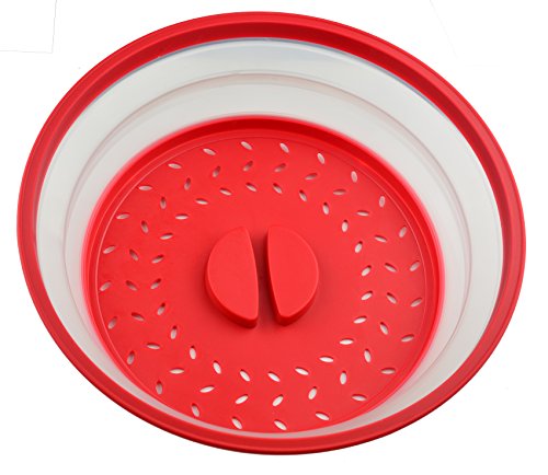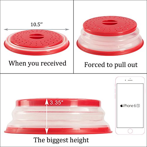 ● Our microwave safe cover collapses for easy storage and takes only a slight press of the hand to lie flat ● Multiple lid perforations allow steam to escape while keeping food moist ● Can be used either expanded or flat to reduce paper towel waste ● All of your messy microwave splatters and "pops" can now be contained ● We stand by our products which is why you're protected by our money back guarantee