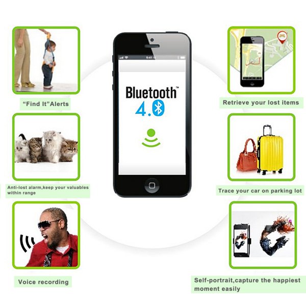 Color: BlueSize:5.2 x 3.1 x 1.1cm(approx)Compatible Devices: iPhone 5S/5C/5/4S/3rd gen, iPad Air, iPod touch(5th gen)Andriod system with bluetooth 4.0 Smartphone (Andriod 4.3 version and up-grade version)Bluetooth version: Bluetooth 4.0 Low EnergyCompatible Phone: iPhone 4S/5/5S/5C, iPad Mini, iTouch 5, iPad 3/4, iPad Air and Andriod system with Bluetooth4.0 smartphone (Andriod 4.3 version and up-grade version)Working distance: about 75 Feet (without barrier)Suitable for: Wallet, Car, Kid, Pets, Bags, Suitcase or other belongsBattery: CR2032 Lithium Coin Battery (Not included)Standby time: 6 monthCertificates: CE/ROSH/EPLApp Name: iTracing (Free of charge)Connects up to 10 iTag unitApp language: English, Chinese, French, Spanish