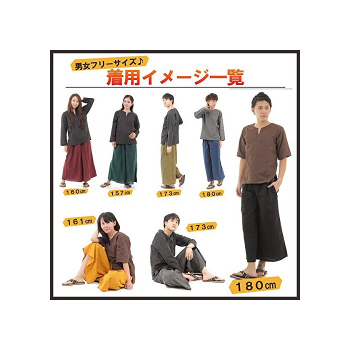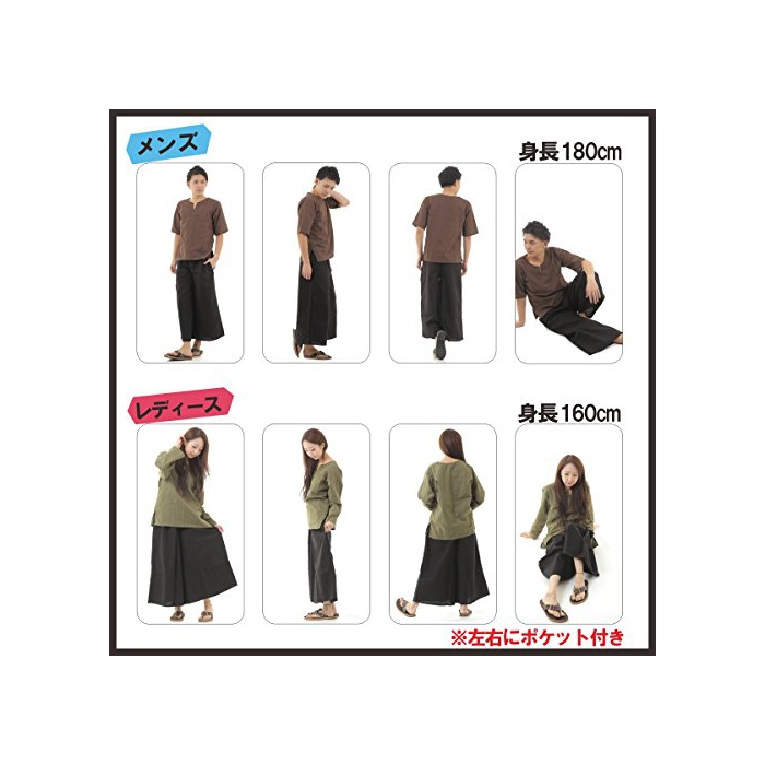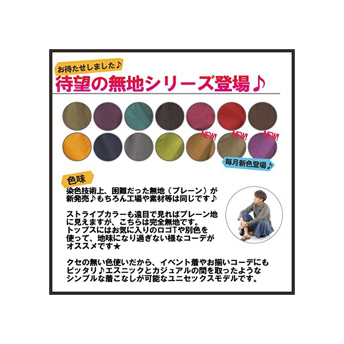 원본상품명: OKI(オキ) タイパンツ ゴム仕 ワイドパンツ ユニセックス メンズ レディス エスニック アジアン (無地ブラック)