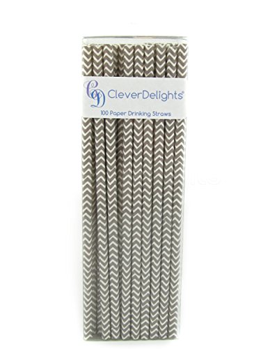 CleverDelights Biodegradable Paper Straws - Gray Chevron - Box of 100