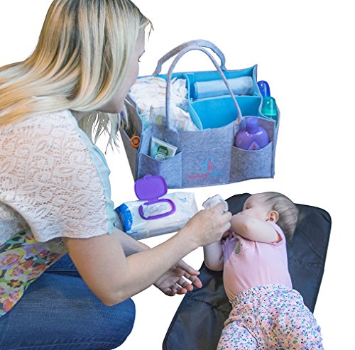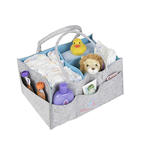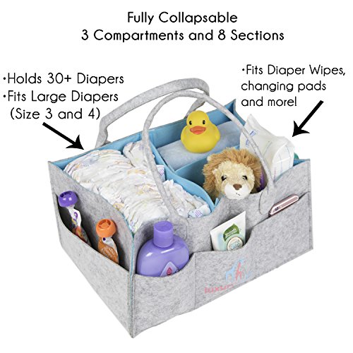 Baby Diaper Caddy :: Extra Large Storage Organizer for Diapers, Wipes, Toys & More :: 3 Inner Compartments + 8 Outer Pockets :: Unisex, Polyester Felt, 16"L x...