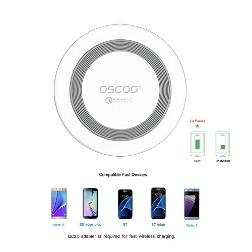 -. Binding : Wireless Phone Accessory -. Brand : Oscoo -. Feature : ✔ Convenient Device: Simply connect the wireless charging pad to a power source and place your phone onto the charging pad and your phone begins to charge automatically, even with your otter box. No cables or USB interface required.. No damage to charging port on your phone. / ✔ Compact Size and Anti Slip Rubber Grip: The wireless charger is compact in size and has rubber grip on its top and bottom that does not allow cell phones made up of glass body like Galaxy S6 to get skid off easily. / ✔ Intelligent Design: Blue LED Indicator for Wireless Charging. / ✔ Safe and Reliable Protection: Integrated smart chip inside it that resisting your phone from overheating, over voltage and short circuit. Come with CE, FCC, RoHS certificates. / ✔ Package includes: Wireless Charging Pad /USB cable/ User Manual / Warranty Card. (standard: 1 year) -. Label : OSCOO -. Manufacturer : OSCOO -. Model : OSC-WH-001 -. PackageQuantity : 1 -. ProductGroup : Wireless -. ProductTypeName : WIRELESS_ACCESSORY -. Publisher : OSCOO -. Studio : OSCOO -. Title : OSCOO Portable Qi Wireless Charger USB Charging Pad for Samsung Galaxy S7/ S7 edge/Galaxy S6/S6 Edge+/S6 Edge/ Note 5 /Nexus 4/5/6 and All Qi-Enabled Devices