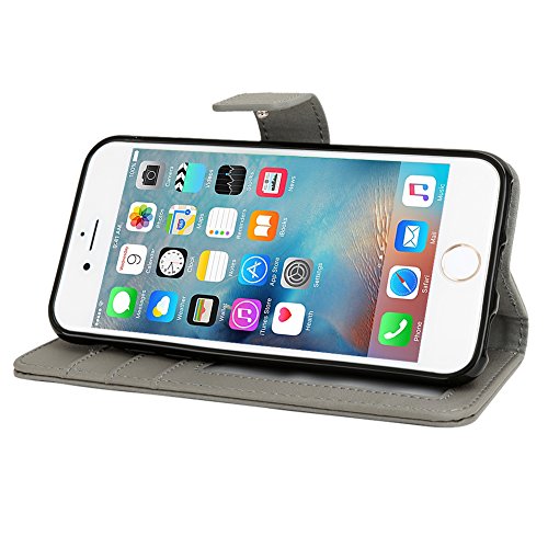 Evecase iPhone 6S Case, Book Style Wallet Folio Leather Case with Credit Card ID Pockets, Stand & Strap for Apple iPhone 6S / 6 4.7'' Smartphone (AT&T, T-Mobile, Sprint, Verizon) - Gray