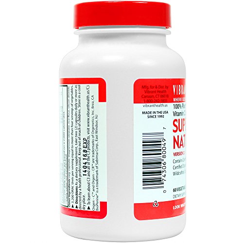 -. Binding : Health and Beauty -. Brand : Vibrant Health -. Label : Vibrant Health -. Manufacturer : Vibrant Health -. ProductGroup : Health and Beauty -. ProductTypeName : HEALTH_PERSONAL_CARE -. Publisher : Vibrant Health -. Studio : Vibrant Health -. Title : Vibrant Health Super Natural C, 3200 ORAC units per serving, 250 mg Vitamin C per serving , SERVING is 2 VegetableCapsules, 60 Vegetable Capsules per bottle