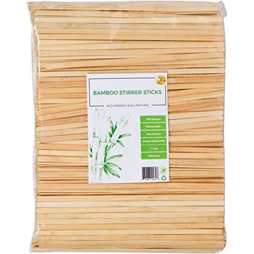 100% NATURAL BAMBOO Coffee Beverage Stirrer Sticks, 5.5-Inch Long (1000 Count), Eco-Friendly, Biodegradable, Pure & Chemical-Free, Stronger than Wood or Plastic, Splinter-Free
