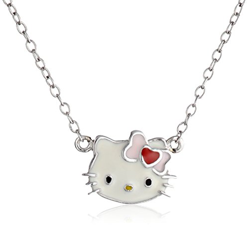 Hello Kitty Streling Silver Heart Bow Enamel Pendant Necklace
