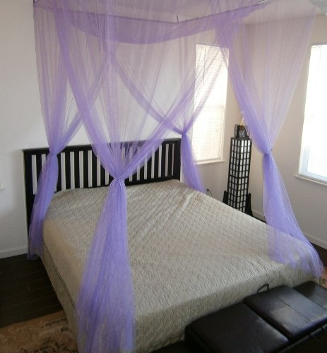 1.Use the 4 screws given, and insert into the ceiling around the proximity of your bed