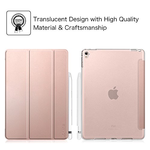 Fintie iPad Pro 9.7 Case with Built-in Apple Pencil Holder - Smart Slim Shell Standing Cover with Translucent Frosted Back Protector Auto Wake / Sleep for Apple iPad Pro 9.7 Inch Tablet, Rose Gold