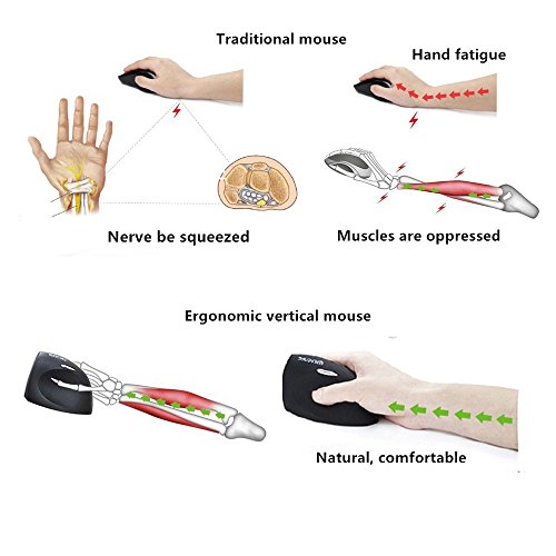 Scientific advanced ergonomic design computer mouse, vertical mice, has natural hand positioning which eases hand and wrist tension. Work in a healthy way. Comfortable and durable.