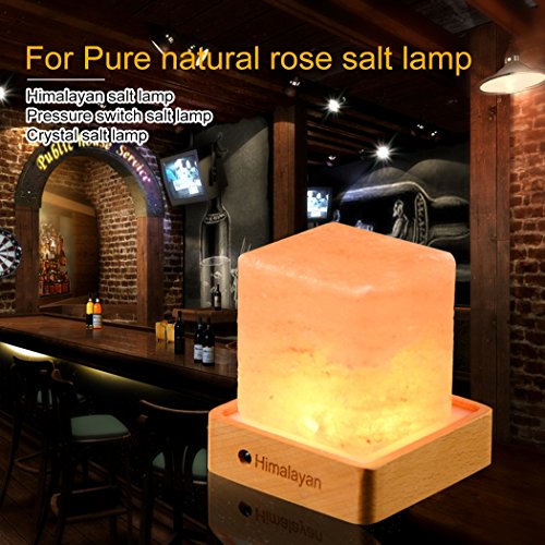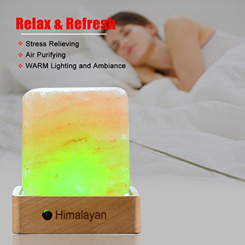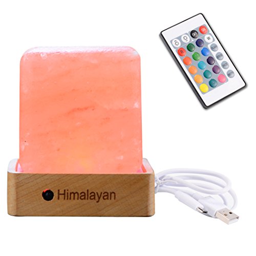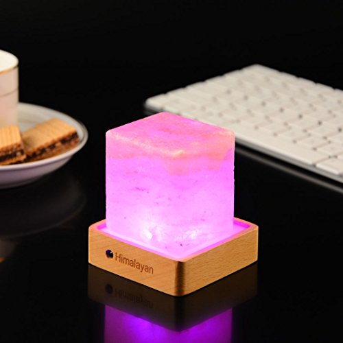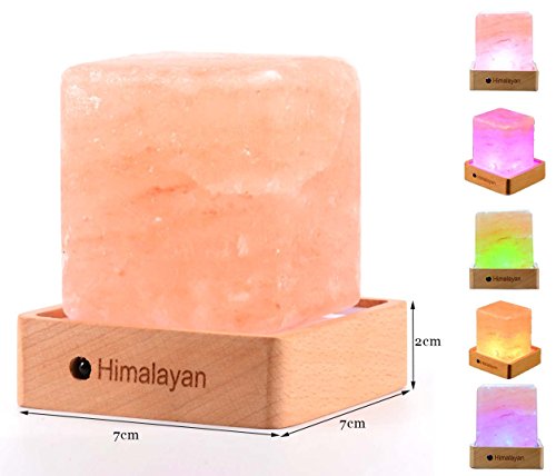 Natural Himalayan Salt Lamp, Chargeable Salt Cube Lamp Put It Anywhere You Want!!! Yuedaer Color Changing Rock Salt Lamp Hand Carved Rock Cube USB Night Light with Wood Base (Variable Colors Version)