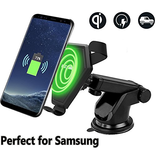 -. Feature : ◆2-in-1 Function: The wireless charger combines the charger and the handset bracket in one unit. So you can put the phone on your car when you drive. At the same time, you can charge through our wireless charger. It is not only for your car, but also for your office or your room. / ◆Two Installation Options:With an air vent mount and a suction mount. The 360 ° rotating spherical connector on both mounts has a flexible viewing angle when driving. Make you better watch your phone. / ◆Fast charge modes:Fast Wireless Charging(1.4 times faster than standard wireless charger pad)are ONLY available for the Samsung Galaxy Note 8, Note 5, Galaxy S6 Edge+, Galaxy S7, S7 Edge, S8, S8 Plus models and You need to use QC 3.0 adapters (Not Included), It is perfectly compatible with samsung's fast charging,but iphone 8 iphone 8 plus iphone X in standard charging speed is very slow, please buy carefully. / ◆Unique structure design: The use of mobile phone gravity and linkage, it does't need complex operation.When the cell phone is put up, The left and right sides automatically grip the handset. One hand operation, simple and convenient. / ◆Important Hint: wireless charger P.R.Inted "FAST CHARGE", where the letter "C" is the sensor center location. Adjust the Adjustable Bottom Bracket, make the center of the phone at the wireless charging center.(Samsung Note 8 or other large size mobile phone, need to make the bottom bracket fall into the last or the last but one stall).If you have any problems, Please email us via Amazon station mail,we offer you 24 hours customer service support and 18 Month Warranty Service.