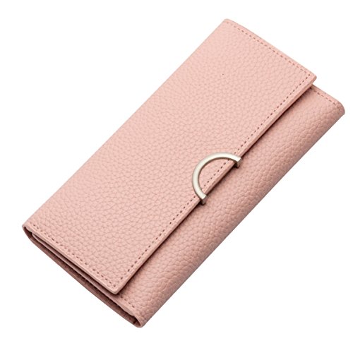 -. Title : Kukoo Women Leather Trifold Long Wallet Solid Color Buckle Clutch Bag Credit Card Holder