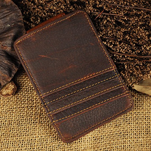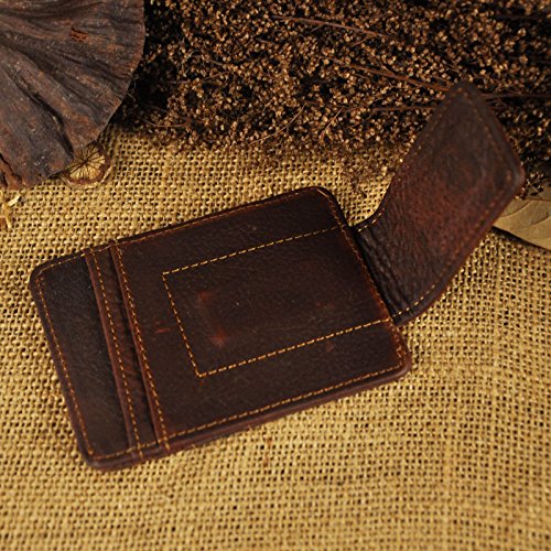 -. Binding : Apparel -. Brand : Le'aokuu -. Color : Brown -. Department : mens -. Feature : Product NO: W1058 / Material: Genuine leather Size: L10.5cm×W1.7cm×H9cm (4.13"×0.67"×3.5") / Structure: This wallet is slim and thin, Perfect Front Pocket wallet to carry some money and a few cards / Good news! According to a buyer's product review, we noticed the card slot's problem, thus we have already update the style in card slots.If you put cards into the card slots (one card one slot), it'll stay in different hight as pictured so that it can be easier to get card out. / Please be noted: This is genuine leather products, it usually come with the leather smell and it'll fade out as time going. It's also easy to get scratches on the surface, please understand, thanks. -. Model : c018 -. PackageQuantity : 1 -. ProductGroup : Apparel -. ProductTypeName : ACCESSORY -. Size : Medium -. Title : Le'aokuu Mens Genuine Leather Cowhide Magnet Money Clip Credit Case Case Holder Slim Wallet