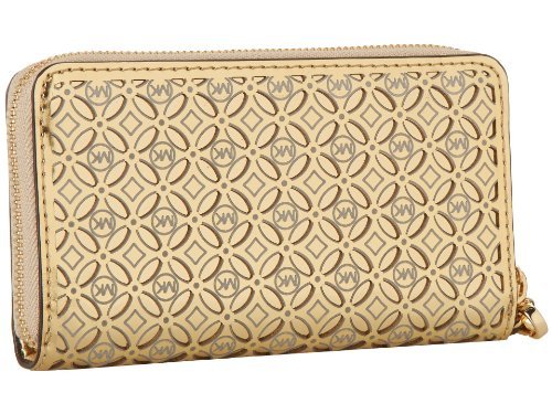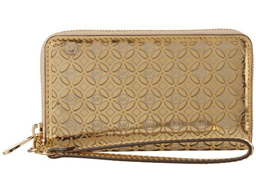 -. Title : Perferated Flower Tech Continental' Leather Wallet Gold