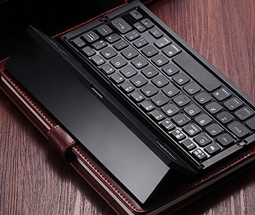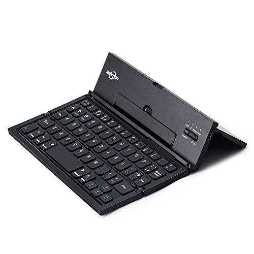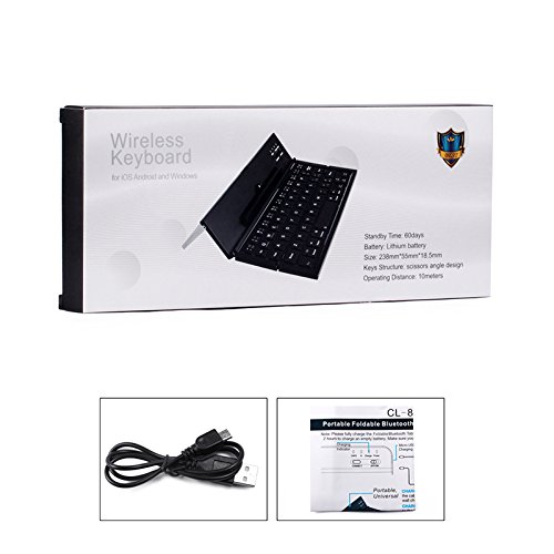 -. Feature : Users feel like using laptop when typing on the Qwerty keyboard. / This foldable bluetooth keyboard is designed with two folds, thus it can be put into pocket easily. / With foldable design, the folding cover can be used for stand when users work on the keyboard. / This foldable keyboard supports iOS/ Android /windows systems. / Package includes: Portable Foldable Bluetooth Keyboard, Micro USB charging Cable, User manual.