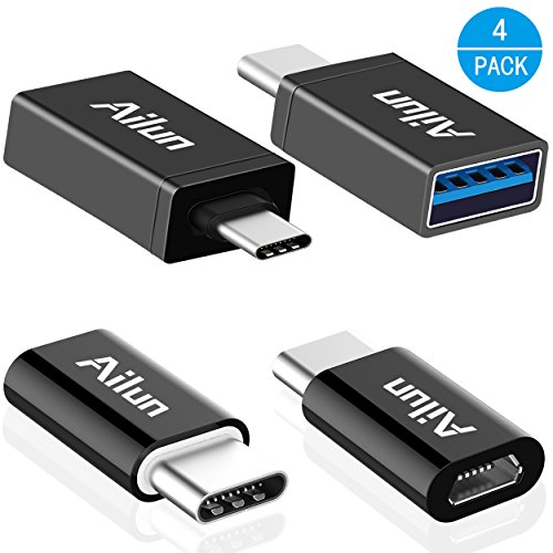 Type C Adapter,Type-C to Micro USB Adapter,Type-C to USB-A 3.0 Adapter[4Pack],by Ailun,Data Syncing and Charging,for MacBook,ChromeBook Pixel,Nexus 5X,Nexus 6P,Nokia N1 and Other Type C Devices[Black]