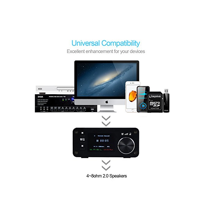 EXECISITE WORKMANSHIP * 0.96''''OLED디스플레이,알루미늄 쉘,CNC마무리,콤팩트&프리미엄 디자인,IR리모트 콘트롤. TONE&EQ * SMSL이 개발하여 소유하는 옵션의 SDB사운드 이펙트.저음과 고음의 레벨을 조정하고, 독자적인 톤 이펙트를 커스터마이즈 할 수도 있습니다.