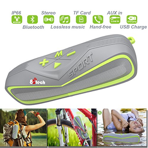 -. Feature : Your best outdoor companion. The 8Gtech is also IP66 rated, which means that it will survive direct splashes of water and also comes with a shockproof and dustproof red exterior. The 8Gtech Bluetooth Speaker is a weatherproof, redized Bluetooth speaker designed for those who need red speakers that can keep up with outdoor sports or extended periods of travelling. / Stylish sporty design that you would love to carry around. The design overall of 8Gtech speaker is sleeker, and the 1800 mAh rechargeable battery guarantees up to 12 hours of playtime. It also allows playback via a standalone micro SD/TF card. The speaker has a carabiner clip attached which comes in handy. You can put it on a belt or on a pack with the clip. It's perfect for adding a little music to a hike or bike ride. / Enjoy the music. The 8Gtech speaker has 3W powerful acoustic drivers which deliver a full-range sound performance and loud music from such a small package. The speaker is designed to produce full and crystal clear sound quality and robust bass with its 3W audio driver. The sound is clear without distortion and the bass well above average for a speaker of this size - the songs with the most bass made the speaker shake. / Hands free celling. The 8Gtech has a hands free celling. You can also control the volume and the soundtracks or even take phone calls directly from these speakers, which means that you don't have to touch your bluetooth device at all (phone or otherwise). Furthermore, it also has an in-built microphone which allows you to take calls while the in the shower. If you pick up the phone call by press the button on your devices, the microphone on the speaker will not work. / Buy with confident: Items shipped from Amazon and can be returned within 30 days.
