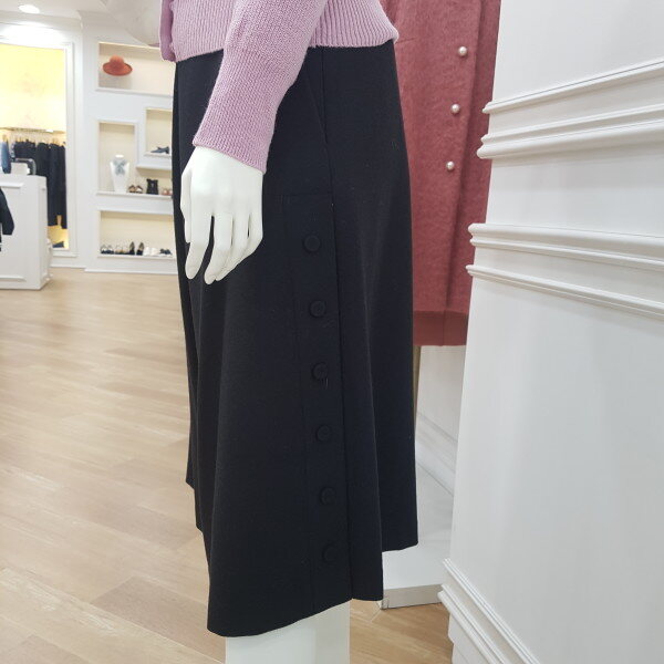 보온성이 있는 소재, 와끼의 트임이 포인트 인 와이드 팬츠 입니다