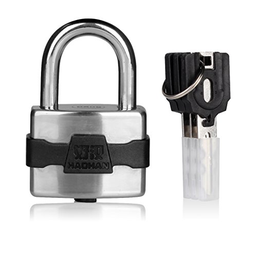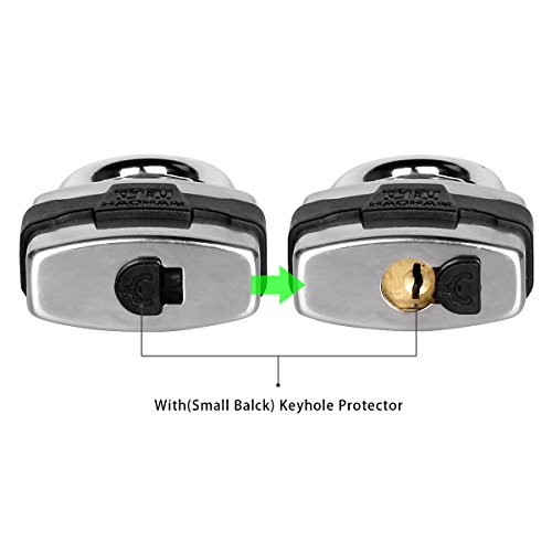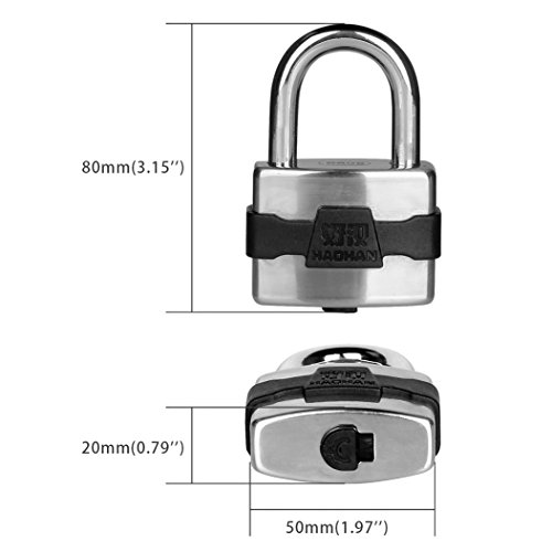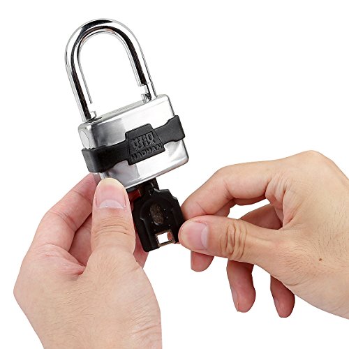 - ▼ STAINLESS STEEL DESIGN: High quality stainless steel padlock. Differenr from most other padlocks, it is with plastic protector on lock body and keys, great handle.