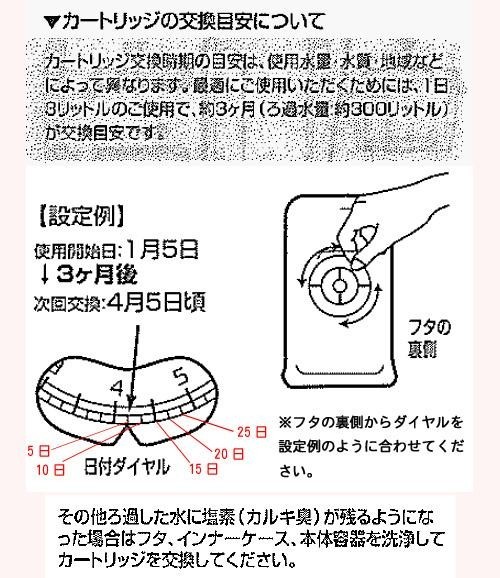 | 塩素・総トリハロメタン・鉛・ニオイを除去し、まろやかなおいしい水をつくります!日本の水道水に合わせてつくられたカートリッジ1本が本体にセット済み。フタの裏にあるダイヤルで、カートリッジの交換予定日に合わせておくことができます。冷蔵庫のドアポケットや野菜室にもかさばらず、すっきり収まります♪ |