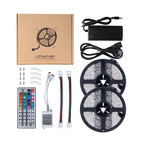 LEDemain 5050 32.8ft 300 unit RGB LED strips,Designed by LEDemain professional LED team. SMD5050 RGB LED strips, remote controller, power adaptor are all in one set.Just plug and play.