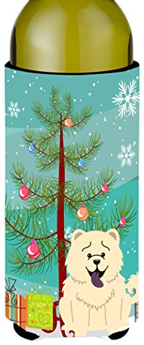 Caroline's Treasures BB4265LITERK Merry Christmas Tree Chow Chow White Wine Bottle Beverage Insulator Hugger, 750ml, Multicolor