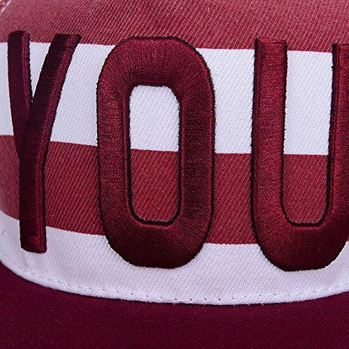 Binding : Apparel Product Description BIBITIME Stripe Baseball Cap Sun Hat Embroidered YOU Hip Hop Adjustable Snapback Material:Mao Qing fabric Size:Hat circumference:55-60cm/21.65"-23.62" ; Brim:7cm/2.76" . Made to fit average adult head(Defined size is normal, please refer to the real subject) Color:black. blue. navy. pink. wine red(Defined color is single, please refer to the real subject) Popular elements:sun hat Category:sunhat cap Suitable season: Spring, Summer,Autumn, Occasion :Beach Travel,Short trips,Outdoor Picnic,Outdoor Camping,Fishing,Dance,Hip Hop Applicable gift-giving occasions: Women's Day,Women March,Black Friday, Cyber Monday,Christmas, Christmas Eve, Birthday gifts, Chinese New Year, Valentine's Day Package include: 1 X Hat (Does not include Other Accessories Usually shipping time is 7-25 working days ,please ignore system shipping time) Notes: 1. Please allow 1-2cm (0.4-0.8 in) differences due to manual measurement, thanks. 2. Item color displayed in photos may be showing slightly different on your computer monitor since monitors are not calibrated same. About Return Policy 1.We accept returns and exchanges within 7 days for any reason, if you are not satisfied with the items you received. Please note that the return shipping cost will be on you party. We will process your return request within 4-6 days after we received the returned item. 2.Please to contact with us immediately for the replacement or repairing,if the item you received is defective. if replacement is not available, please give us a picture as evidence, we will refund you. 0