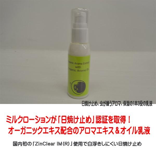 赤ちゃんから大人まで使える日焼け止め乳液 ハーブで虫除け効果も入っていてお子様と一緒に使える 肌に優しいローションです。 <h1 class="ttl">ミルクローションが「日焼け止め」認証を取得! オーガニックエキス配合の アロマエキス&オイル乳液</h1> 〜国内初の「ZinClear IM(R)」使用で白浮きしにくい日焼け止め〜 フェイスからボディ全体に使えて、石鹸で簡単に落とせる肌に優しく無香料タイプの乳液です。天然のオーガニックアロマの香りをバランス良く配合し、 レモングラス、ラベンダー、ローズマリーなどの香りがします。 「アロマエキス&アロマオイルミルクローション」は、 無着色・無香料・紫外線吸収剤不使用・パラベンフリーで オールシーズンタイプの国産オーガニックボディー乳液です。 白浮きせずに、しっとりサラリとベタつかない使い心地。 お肌をいたわりながらしっかり潤いを与えるオーガニックハーブエキス配合の乳液です。 <3つの特長> 1:国内初、究極の透明度とミネラルベースの紫外線散乱剤「ZinClear IM(R)」を使用 2:天然のオーガニックアロマの香りをバランス良く配合 3:国内オーガニックコスメ認定工場にて製造 |