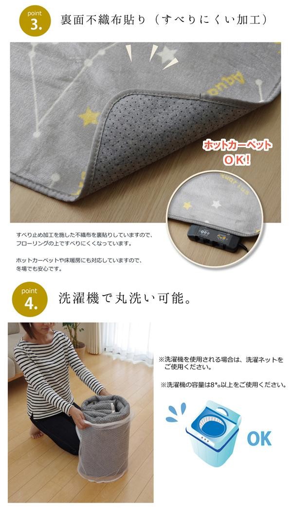なめらかな肌触りのフランネルを使用したラグです。ホットカーペットカバーとしてもご使用いただけます。 |
