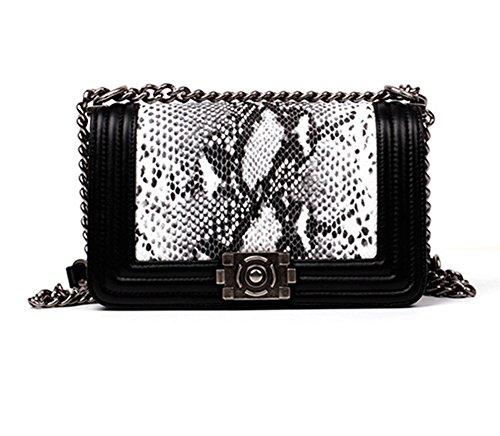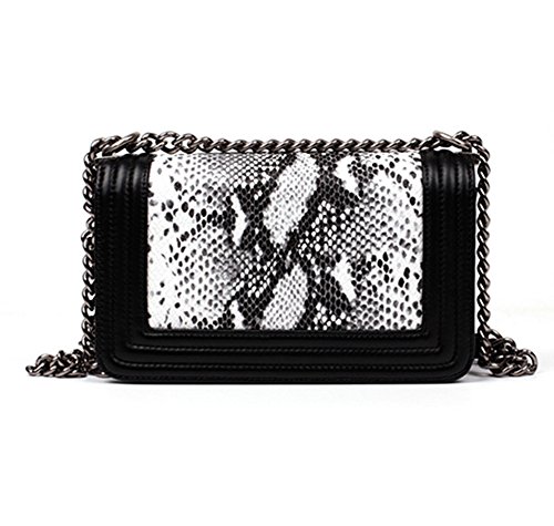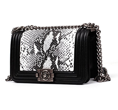 Ainifeel Genuine Leather Snakeskin Embossed Shoulder Handbag Crossbody Bag With Chain Strap