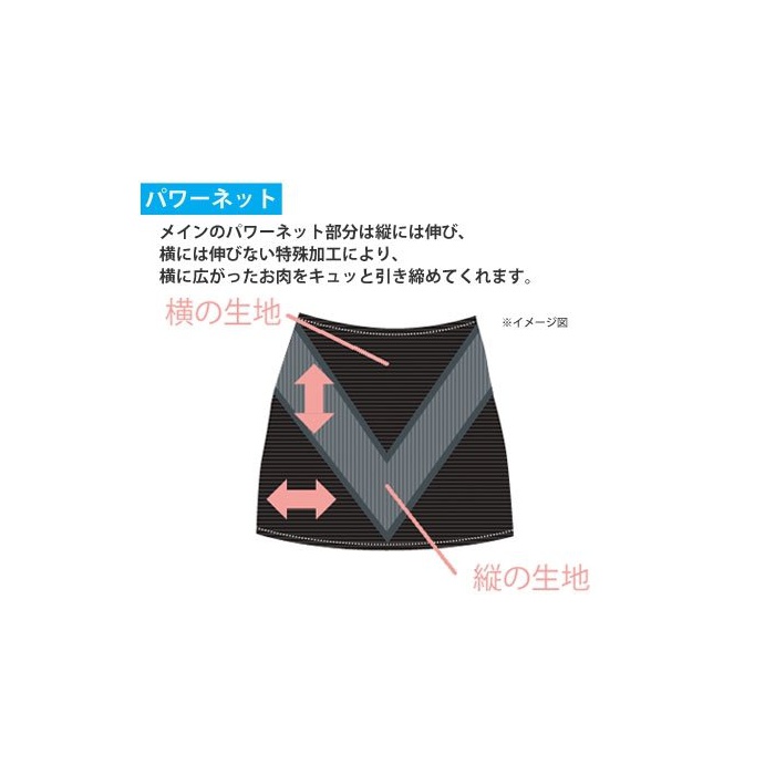 ◆셰이프 포인트②“슬림하게 보이는 구조”메인의 파워 넷 부분은 세로에는 뻗음(늘어남,펴짐),옆에는 펴지지 않는 특수 가공.이것에 의해옆에 퍼진 살코기를《규》과 졸라(매어) 줍니다.그리고 신축하여 어려운2 중구조“V자 라인”나와 살코기의 확대를 저지!배의“쳐짐”를 확실히 억제해 복근을 의식시켜 줍니다.