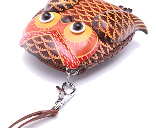 PurseWorld Women's Handmade Leather Coffee Owl Purse