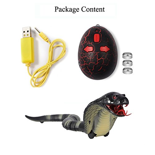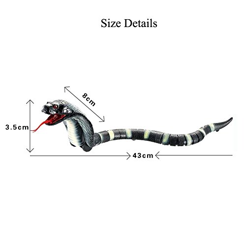 -. Feature : Messar RC Snake will fun for Halloween Christmas party tricks,for everyone's sake as soon as you come up with a really good scheme.Recommended for ages Six and above / Messar Super Realistic and Fast Moving Snake: Forward, left and right turn, stop, retractable tongue, swinging tail. Segmented body for excellent slithering action / Messar Cobra Snake Toy measures approx 16" long with (22) segments and creeps along quite quickly when you push the forward, left or right buttons on the snake-eggish infrared remote / Messar Remote runs on (3) button-cell batteries (included) and the Naja snake is rechargeable via the included USB charge cord / Messar Fake Snake Size: 39 x 3.5 x 8cm / 15.35 x 1.4 x 3.1 inch. Remote Range is about 10M/40 inch. Charging time:about 40 minute. Play time:>=15 minute