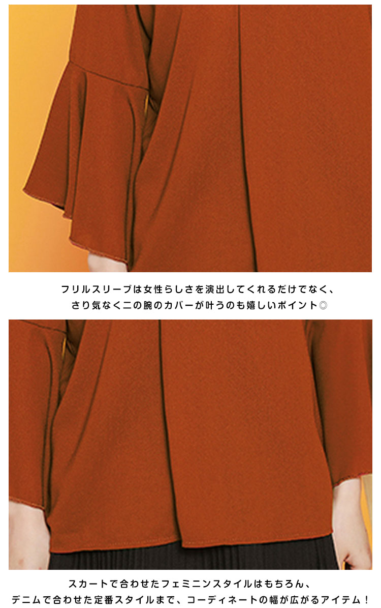 | ほんのりクラシカルな雰囲気で、女性らしさを感じるデザイン。程よいゆるシルエで、ふわっと体系カバーしてくれて落ち感もキレイ★ フレア袖がフェミニンさをプラスし、女性らしさ引き立つデザインに。 キレイめなコーデにも、デニムパンツなどにも合わせても品よく『大人レディ』スタイルに変身♪ | |