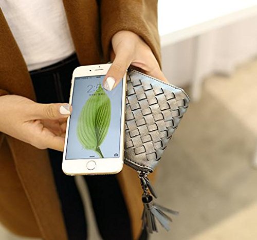-. Feature : 編み込みが上品なおしゃれな二つ折り財布です。手のひらサイズがお好きな方には、とてもお勧めです。 / バリエーションが豊富で、カードポケット4つと、小銭入れもついています。 / 【素材】PUレザー 【カラー】 黒(ブラック) 濃灰色(ダークグレー) 薄灰色(ライトグレー) 赤(レッド) 水色(スカイブルー) / 【サイズ】 10cm×11cm×2cm ファスナー開閉