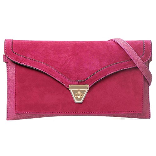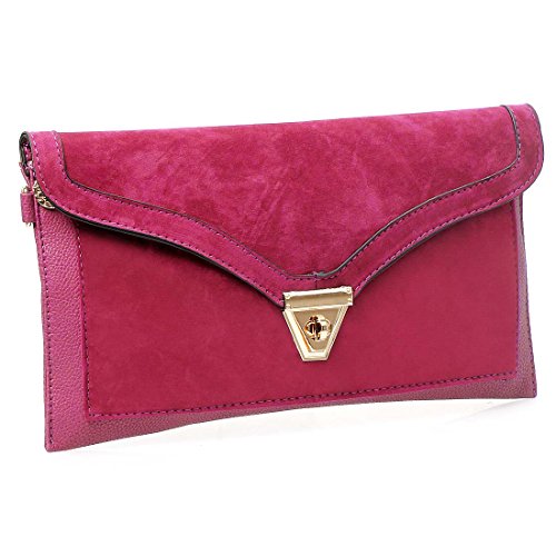 This fuchsia pink envelope flap fashion handbag is just the thing you need to take your look to the next level. The clutch features textured faux leather and is topped with a soft suede like material. The bag is very roomy and has more than enough room for all of your essentials. The main compartment also features interior pockets to help keep you organized; and if that wasn't enough, there is also an additional exterior pocket for you quick access items. The clutch comes with the removable, adjustable strap so that you can transform this purse into a dangling shoulder bag or crossbody bag. A very fashionable accessory for any collection. *NOTE*: Due to differences between monitor displays, actual color may vary slightly from image. b.m.c is a registered trademark of Remi Collections LLC and is exclusively distributed by Bundle Monster. The b.m.c trademark is protected by US Trademark Law.Feature