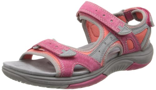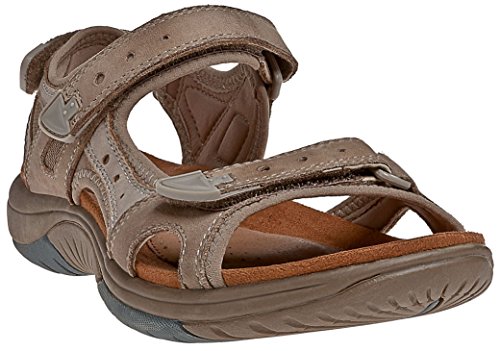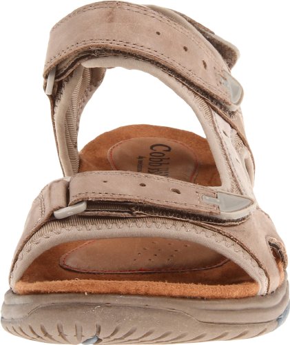 Give your feet a treat in the versatile Cobb Hill Fiona sandal. This women's casual sandal has a leather and neoprene upper; the hook-and-loop straps enables a snug, adjustable fit. The cushioned footbed is covered in leather and textile to pull moisture away from the foot, keeping you comfortable as you pick up the pace. The Cobb Hill Fiona open-toe sandal has a synthetic sole for sturdy traction.