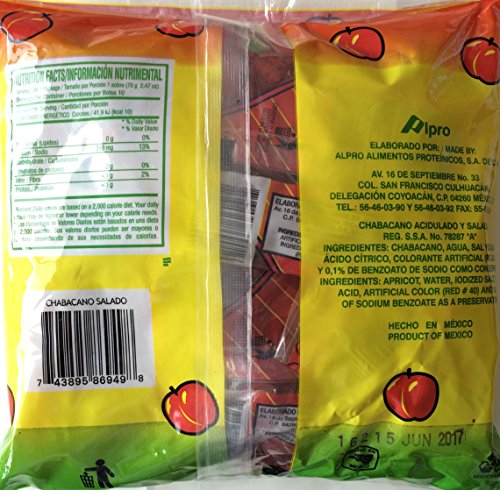 -. Feature : Chamoy chabacano salado en jugo rojo Mexican salted aP.R.Icot in red juice 10 pieces in this pack sealed (Net Wt. 70 grams each piece) one new sealed pack.