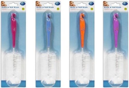 -. Feature : First Steps bottle and teat brush / 2 brushes in 1 / Nipple brush stores in the handle / Please note that colour cannot be specified / Colour: Pink/Blue/Orange/Purple