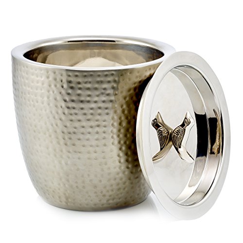 Studio : Old Dutch Publisher : Old Dutch Binding : Kitchen Product Description This Double-Walled Ice Bucket will keep a good supply of ice chilled all evening. Insulating double wall construction keeps ice cold for hours and helps prevent sweating. Featuring an elegant hammered finish and a decorative bird-shaped knob, this ice bucket will be a stand out in your barware collection. 0
