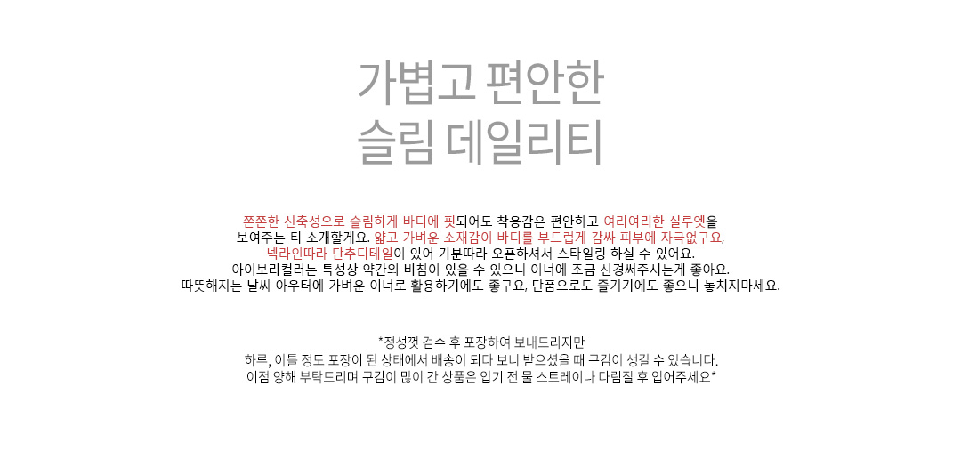 .같은 사이즈라도 체형에 따라 핏감이 조금씩 다를 수 있습니다.